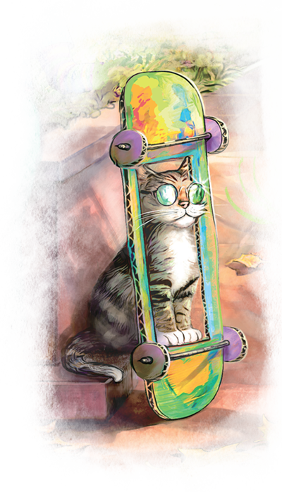 Together, these three besties shred it at the skateboard park, play hide-and-seek with a giant, slobbering dog, and pick out the coolest new cat toys at Nomi’s favorite pet store.